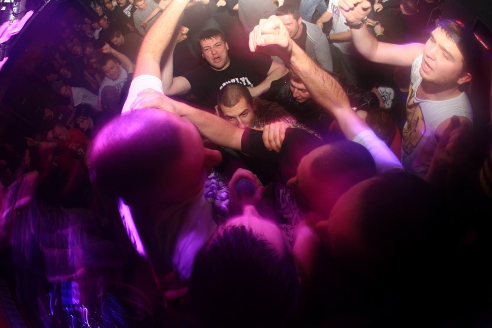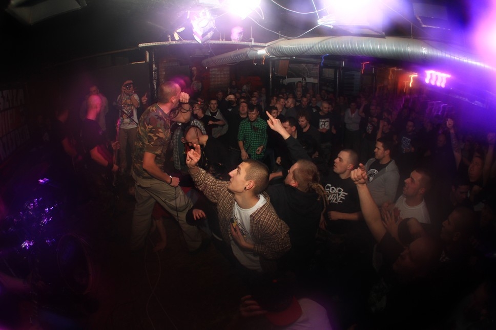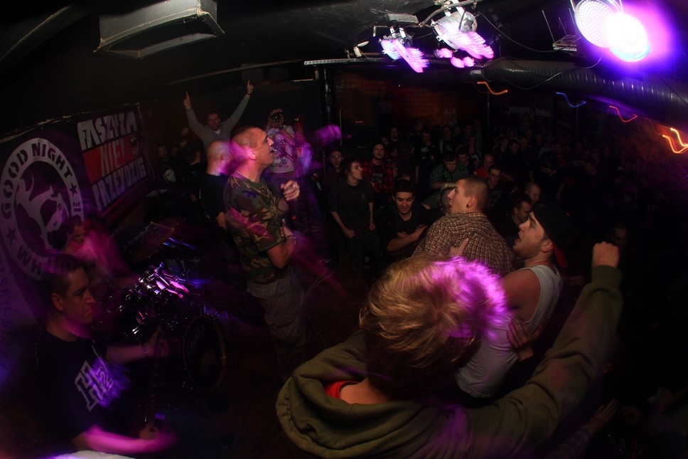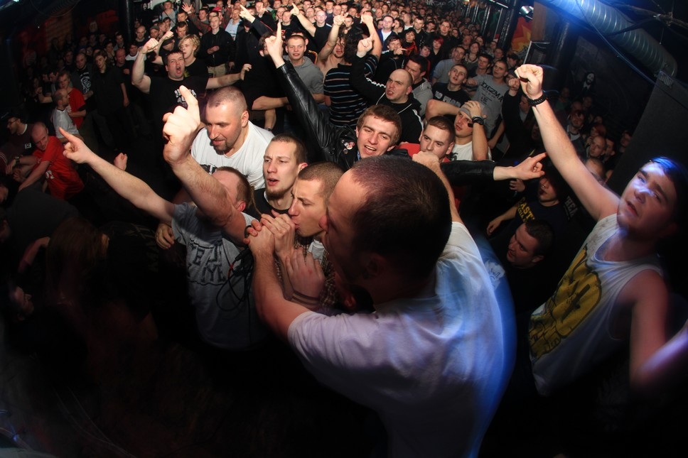 14 stycznia mieliśmy okazję gościć w Bielsku-Białej na koncercie, który był jednocześnie piętnastymi urodzinami zespołu Eye For An Eye. Oprócz solenizantów na scenie można było zobaczyć między innymi Watching Me Fall oraz 1125. Frekwencja przeszła najśmielsze oczekiwania, zarówno nasze jak i organizatora. Bielski klub Backstage był wypełniony po brzegi. Na grających jako przedostatni 1125 organizator zdecydował się już nie wpuszczać więcej ludzi. A chętnych nie brakowało. Jak dla mnie był to fenomen, gdyż tylu ludzi nie widziałem nawet w Krakowie na Sick Of It All. Poniżej znajdziecie link do zdjęć udostępnionych nam przez Jakuba Kubańdę.