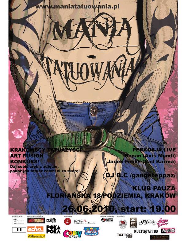 Podczas sobotniej imprezy Mania Tatuowania w krakowskim klubie Pauza odbędzie się Art Fusion z udziałem zgromadzonych krakowskich tatuażystów. Tematy do artystycznej fuzji może zgłaszać każdy, kto ma ciekawy pomysł. Do wygrania praca, która powstanie podczas Art Fusion.