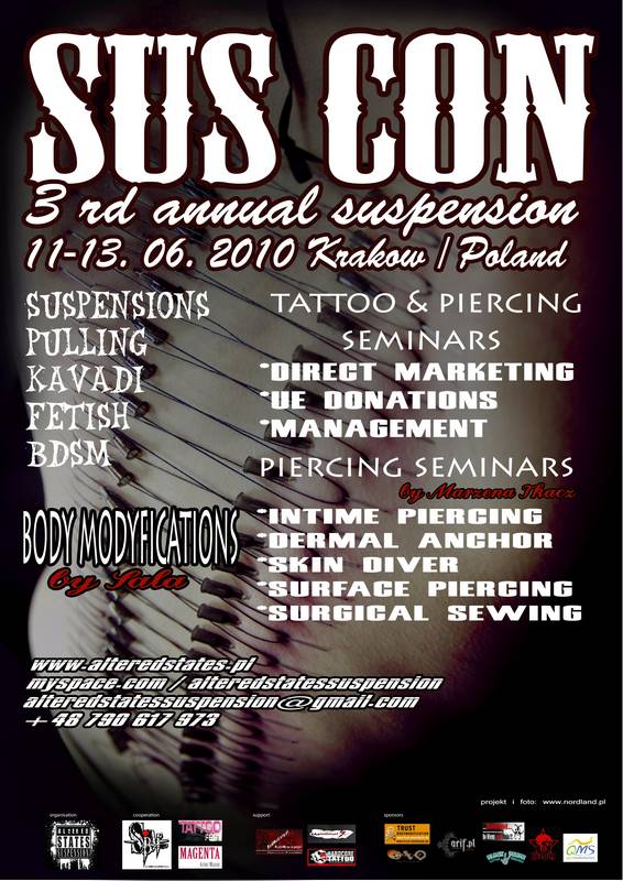 W drugi weekend czerwca (11-13) odbędzie się 3rd Annual Suspension – trzydniowa impreza poświęcona tematyce modyfikacji ciała. Organizatorzy zapowiadają szereg atrakcji takich jak pokazy, seminaria, warsztaty czy panele dyskusyjne.