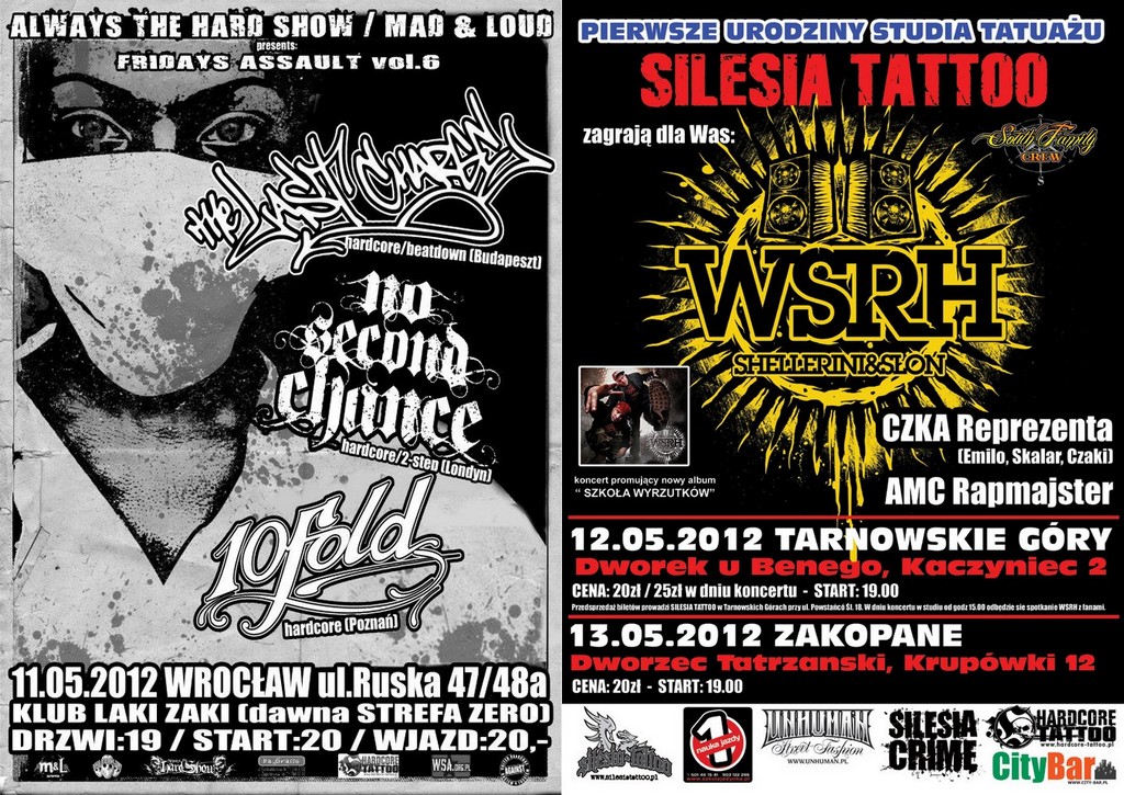 W najbliższy weekend (11-13 maja) zapraszamy na trzy koncerty, którym patronuje portal Hardcore Tattoo. Startujemy w piątek we Wrocławiu z The Last Charge, a potem z hardcorowych klimatów przerzucamy się na hip-hop i towarzyszymy WSRH w Tarnowskich Górach i Zakopanem.