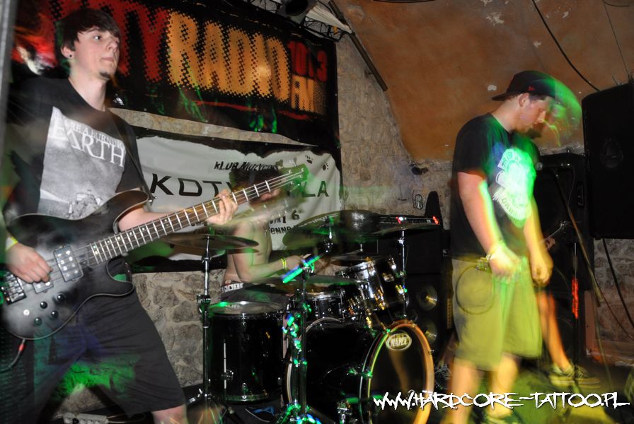 Na scenie klubu KotKarola przed Francuzami zagrały trzy inne ekipy. Jako pierwszy wystąpił zespół chłopaków z Suchej Beskidzkiej studiujących w Krakowie – czyli Six Steps Forward. Warto dodać, że był to ich debiut sceniczny, z którym całkiem dobrze sobie poradzili. Po nich zainstalował się śląski Tester Gier, czyli jakby nie patrzeć kontynuacja Świniopasa. Koncert w Krakowie był jednocześnie release party ich świeżo wydanego krążka „Speed metal”. Po nich na scenę weszli panowie z Evilschlesien skutecznie rozgrzewali publiczność przed kończącym koncert występem DIGa. Zapraszamy do obejrzenia zdjęć z tego koncertu.