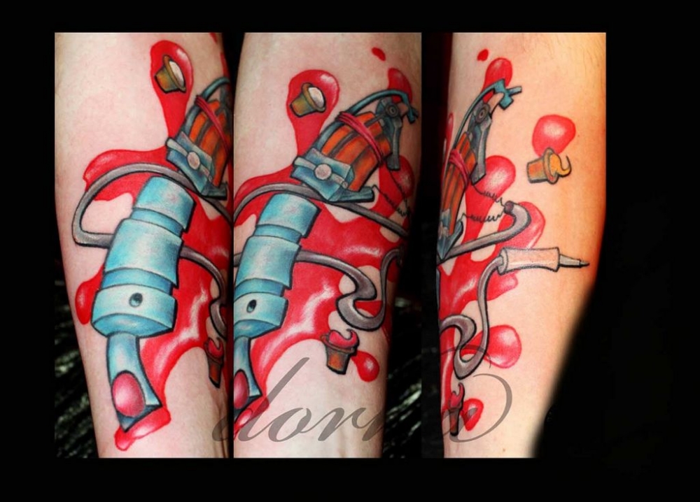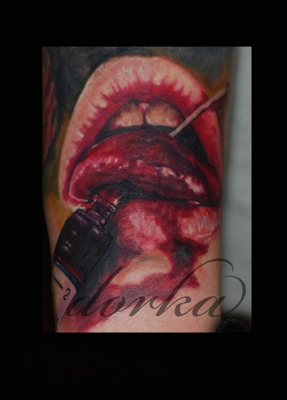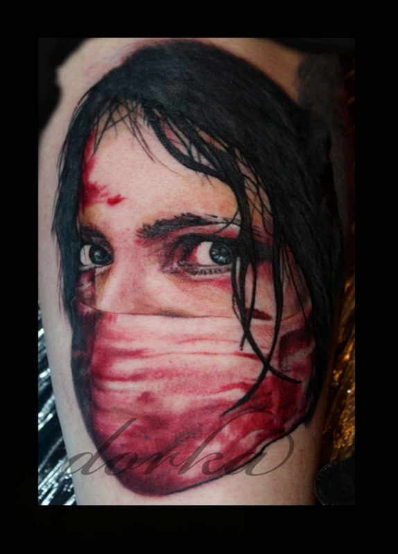 – Jasne że pamiętam swój pierwszy tatuaż! Patrze na niego każdego dnia. Przeorałam sobie udo. Nie wyszło najgorzej, więc zaczęłam tatuować znajomych. Po pół roku kaleczenia ludzi w domu, zaproponowano mi prace w studiu w Katowicach. Od tego czasu aż do porodu (2006 rok – przy. red.) pracowałam w śląskich studiach. Nie było to miłe przeżycie. Faceci, z którymi pracowałam, zawsze próbowali podkreślać swoją pozycją i zniechęcać mnie do tatuowania. Myślę, że największym problemem był dla mnie brak akceptacji, straszna wrogość i ciągła walka o to, bym mogła tatuować.