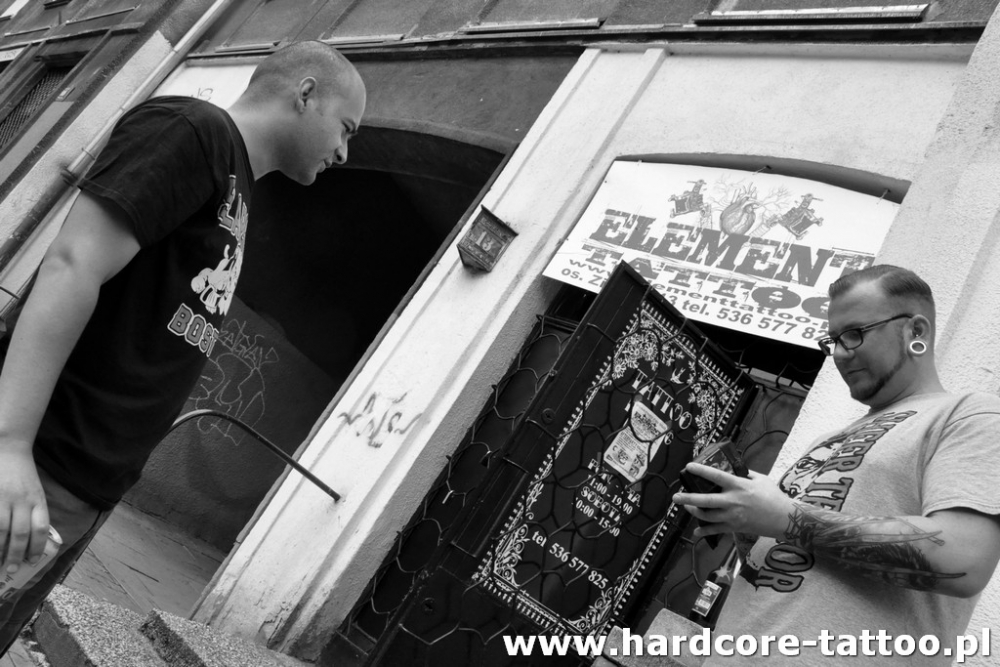 Studio ELEMENT TATTOO jest w dużym stopniu związane z portalem Hardcore Tattoo, bo pracuje tam właśnie portalowa ekipa. – Założeniem Element Tattoo jest nie tylko tatuowanie i kolczykowanie. Chcemy, żeby studio było miejscem spotkań pozytywnie zakręconych ludzi, nie tylko na punkcie tatuaży – podkreśla ekipa Element Tattoo.