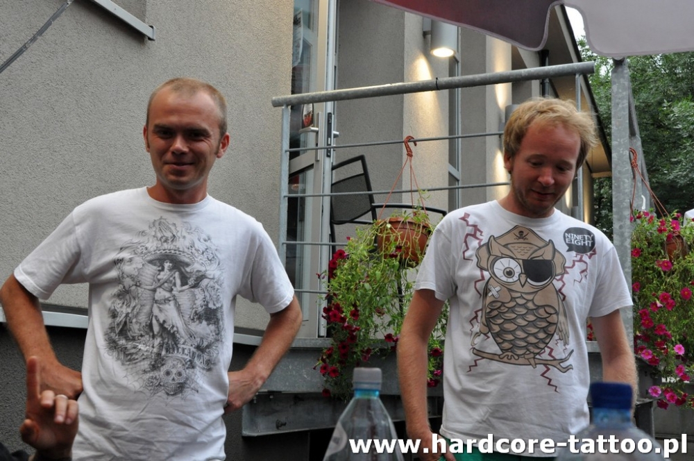 Studio działa od tygodnia, a już odwiedziło je bardzo dużo osób. Widać to było między innymi podczas oficjalnego otwarcia, które odbyło się w piątek, 6 lipca. Tego dnia przez studio przewinęło się kilkadziesiąt osób. Powstał między innymi bardzo ciekawy wzór związany z Nową Hutą, który został wykonany na karku Maćka Twaroga, pasjonata Nowej Huty, byłego radnego Krakowa i obecnego pracownika Muzeum Historycznego Miasta Krakowa, który ma już na swoim ciele kilkanaście nowohuckich tatuaży. Wzór na kark Maciej Twaróg zaczerpnął od firmy Unicut, która produkuje odzież związaną z Nową Hutą.