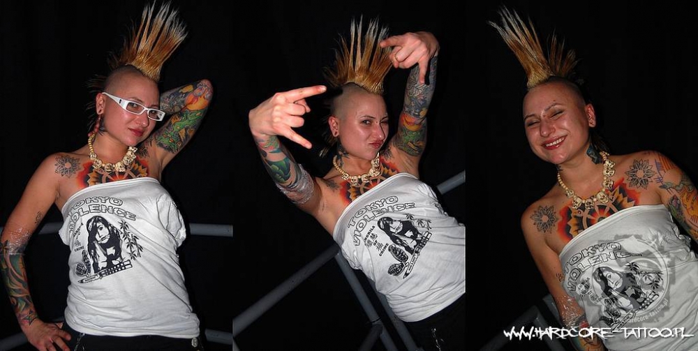 Kocham konwencje tatuażu. Na pierwszej byłam w 1999 roku. To było Tattoo Expo w Bolonii. Philippe Leu zaprojektował plakat do tej imprezy. Od tamtego czasu byłam już na bardzo wielu imprezach tatutaorskich. Wyjazdy na konwencje to świetna okazja, by powiększyć swoją wiedzę, zawrzeć nowe znajomosci i spotkać dawnych przyjaciół. W tej branży to bardzo ważne mieć zaufanych przyjaciół i trwałe kontakty. Do tej pory nie pracowałam na konwencjach. Głównie pomagałam swoim przyjaciołom. W tym roku po raz pierwszy będę mieć własny boks, w kwietniu w Hamburgu. Nie mogę się już doczekać!