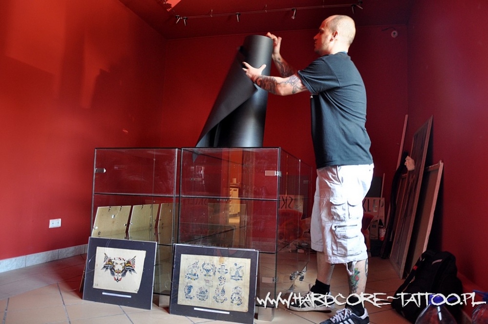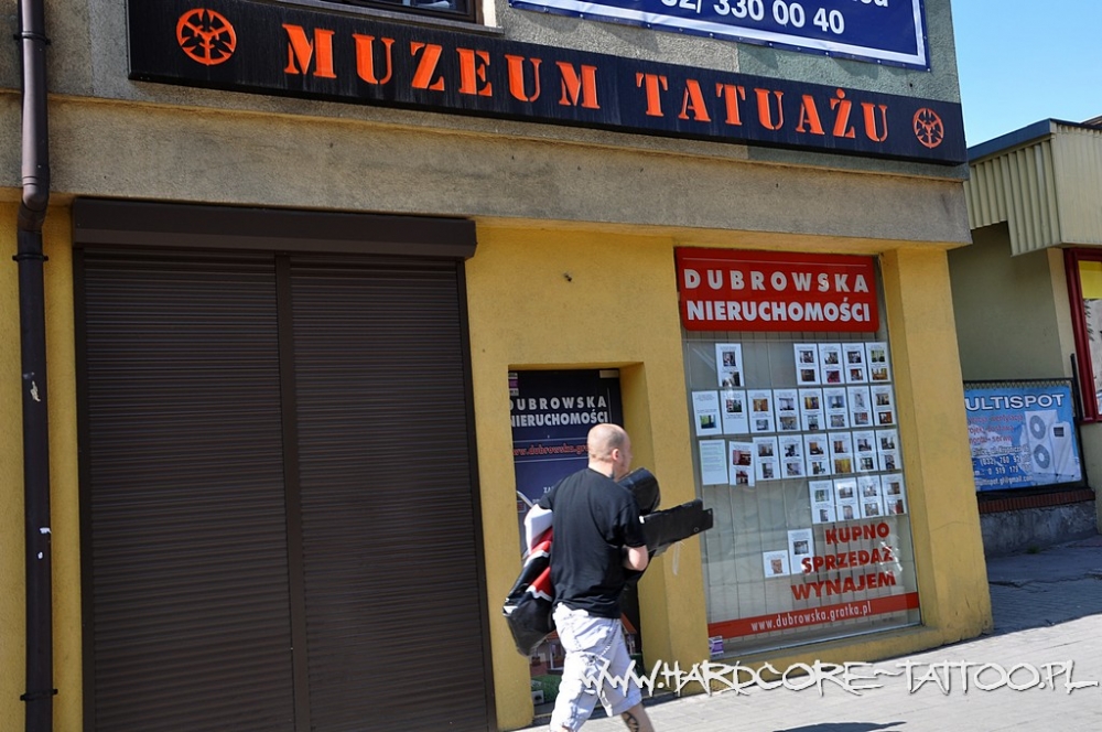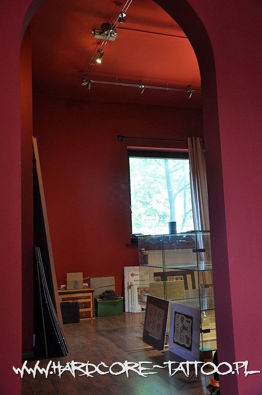 Gospodarz prowadzi nas po schodach na górę. Wszędzie wskazówki z napisem „Tatuaż”. Wchodzimy do lokalu na pierwszym piętrze. Nieduża poczekalnia z biurem oddziela studio tatuażu od pomieszczeń, które powoli wypełniają się eksponatami. Za szklanymi drzwiami dzielnie pracują tatuatorzy. Nie będziemy przeszkadzać! Idziemy naprzeciwko, zobaczyć jak wygląda dziś Muzeum Tatuażu.