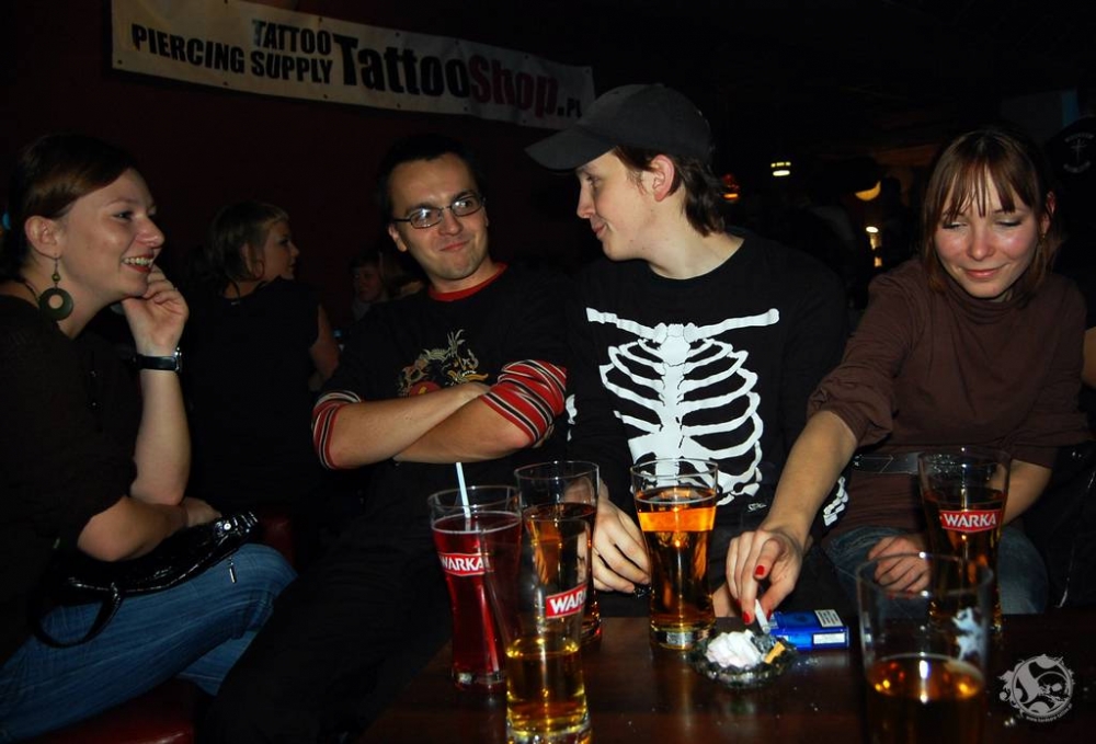 Sporym zainteresowaniem natomiast cieszyły się konkursy – loteria sklepu ze sprzętem tatuatorskim, gdzie do wygrania były talony do realizacji w sklepie oraz spontaniczny konkurs na najlepszy tatuaż na imprezie zorganizowany przez nasz portal – www.hardcore-tattoo.pl, gdzie do wygrania były koszulki zaprojektowane przez świetnego polskiego tatuatora – Sławka Myśkowa. Ośmieleni przez reprezentanta naszego portalu uczestnicy imprezy chętnie wychodzili na środek prezentując swoje tatuaże, które licznie zgromadzona pod minisceną publika oceniała brawami. Bezsprzecznie wygrała Kasia i jej wzór na plecach wykonany przez studio D3XS.