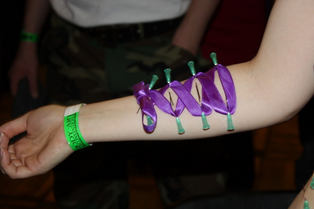 Nie zapędzając się w filozofię, pokażę wam, co ta „sztuka ciała” miała wspólnego z warszawską konwencją tatuażu Body Art Convention 2011. Bo miała i to wiele… Organizatorzy umożliwili piercerom zaprezentowanie się od a do z. Faktycznie, nie mieliśmy ograniczeń! Dzięki temu, przygotowaliśmy dla odwiedzających kilka atrakcji.