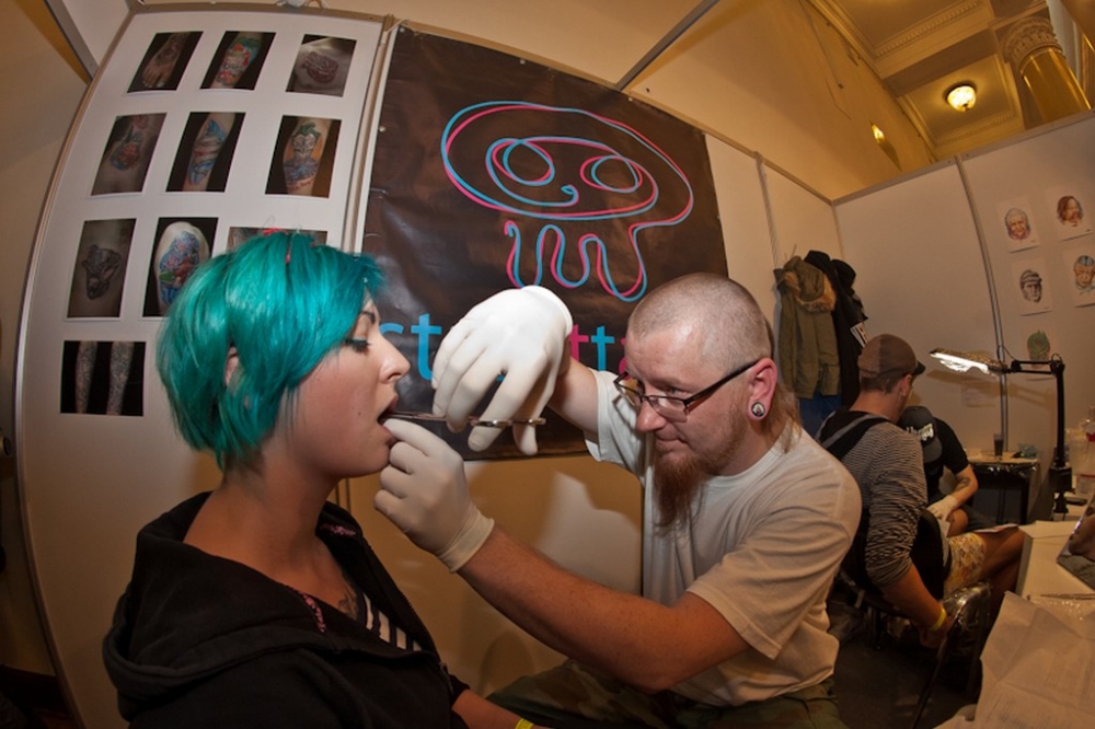 Nie zapędzając się w filozofię, pokażę wam, co ta „sztuka ciała” miała wspólnego z warszawską konwencją tatuażu Body Art Convention 2011. Bo miała i to wiele… Organizatorzy umożliwili piercerom zaprezentowanie się od a do z. Faktycznie, nie mieliśmy ograniczeń! Dzięki temu, przygotowaliśmy dla odwiedzających kilka atrakcji.