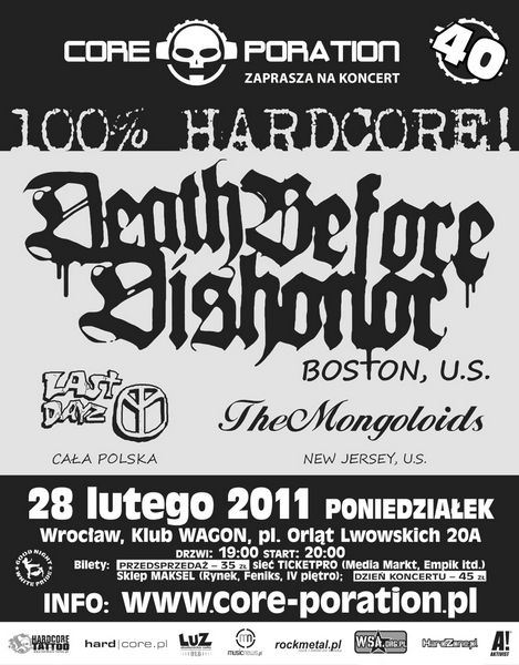 Death Before Dishonor bardzo lubi odwiedzać Polskę. Bostończycy, za każdym razem kiedy u nas grają, podkreślają, że mamy wspaniałą publikę. W lutym wracają do naszego kraju po raz kolejny. W poniedziałek, 28 lutego zagrają we Wrocławiu razem z The Mongoloids i Last Dayz. Portal Hardcore Tattoo objął koncert patronatem medialnym.